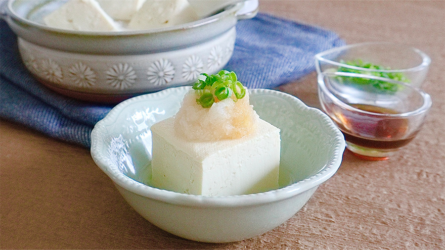 - 器に木綿豆腐と大根おろしを盛り付け、小ねぎをのせ、お好みでぽん酢しょう油をかける。