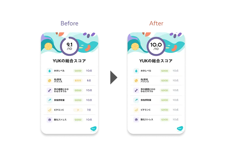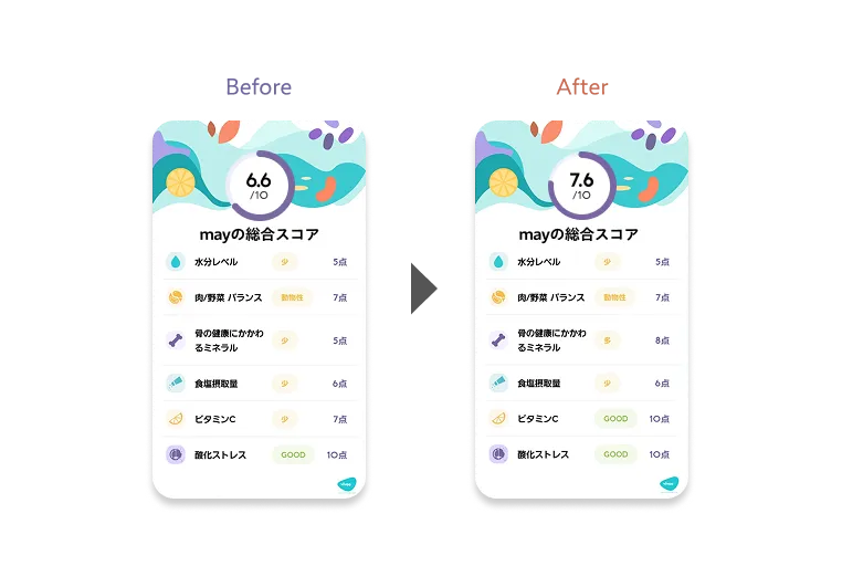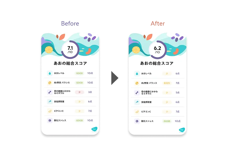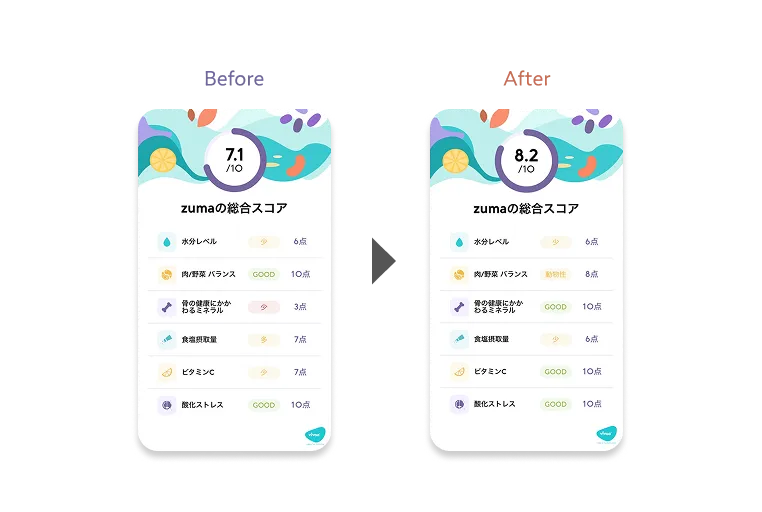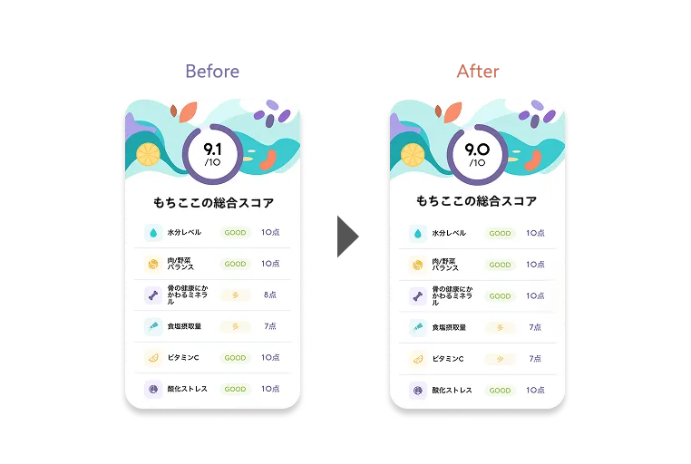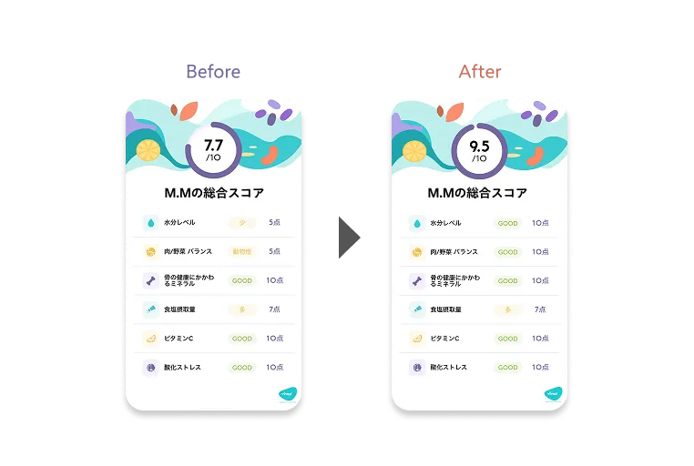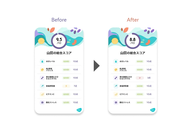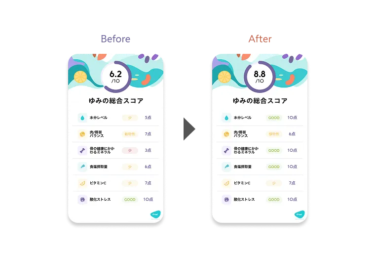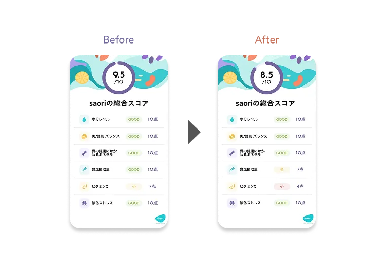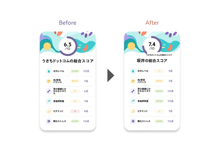 総合スコア6.5点から食生活を見直すことで8.5点までアップ