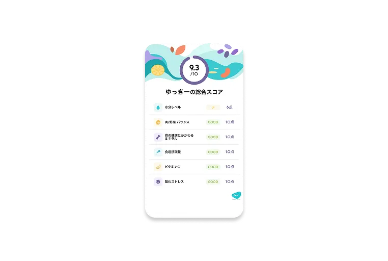 初回のテスト結果を見て、満点を目指したくなりました!アドバイスなどを取り入れて食生活や寝る時間など普段の生活習慣を気を付けたところ、2回目で満点をとることができました!家族とデータ連携などもできるようになったら、嬉しいです!