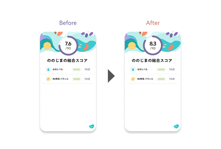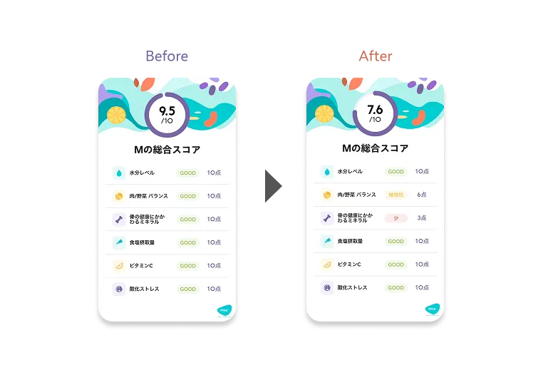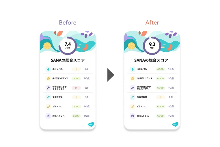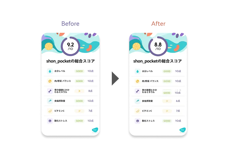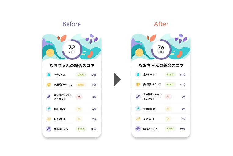 総合スコア7.6点から食生活を見直すことで9.2点までアップ!