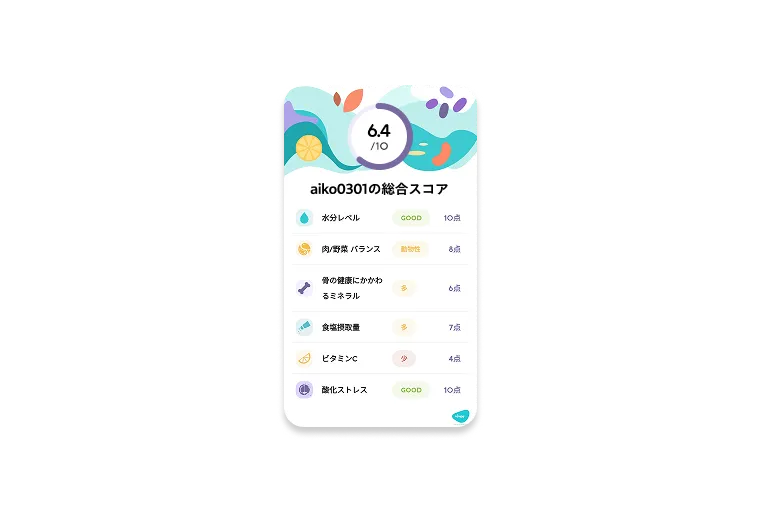 結果がすぐに出るし、自分の食生活の傾向が可視化できるので、楽しかったです!初回のテスト結果を踏まえて、ビタミンCを意識したところ、改善することができました。アドバイスも具体的なので、何を変えていいかわからない人にもおすすめです。